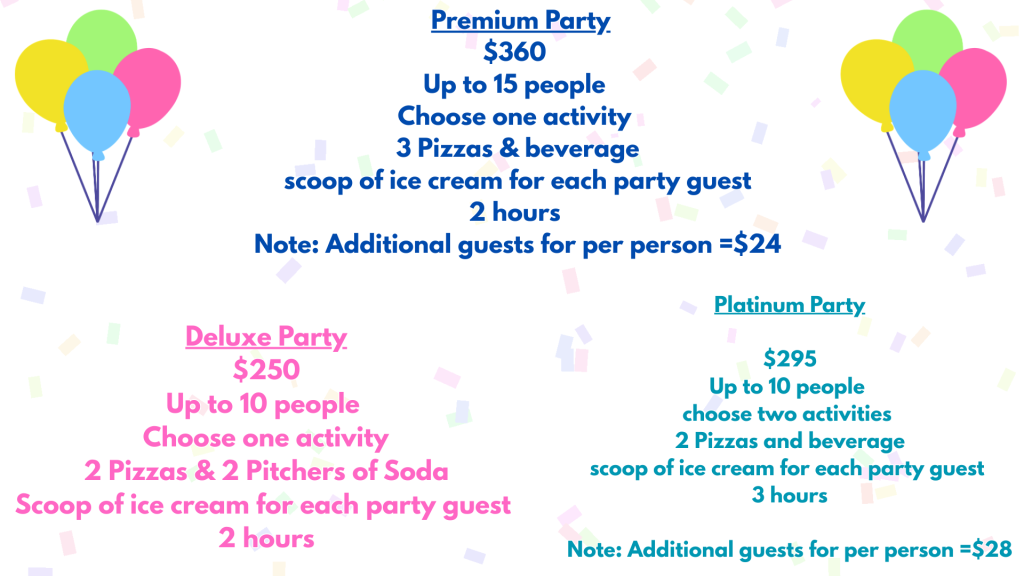 Every Birthday Party Package will include: