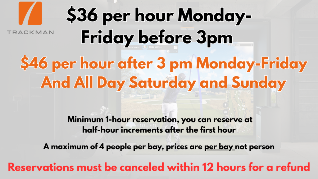 Trackman Indoor Simulator Book a Trackman Bay HERE Trackman VIP Membership: Buy a $100 giftcard and get $120 value for use on Trackman Indoor Simulators at Missing Links Purchase VIP Membership Here Reservations must be canceled 12 hours prior for a refund